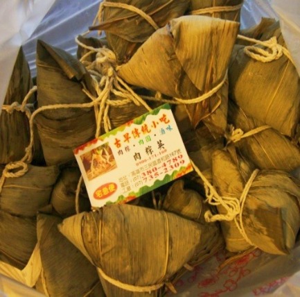 各式口味的粽子有 : 花生肉粽、全蛋黃香菇肉粽、全蛋黃粽、干貝肉粽、五穀肉粽、五穀素粽、一般素粽。端午節前須先預訂,自家吃或者送禮都不錯喔!